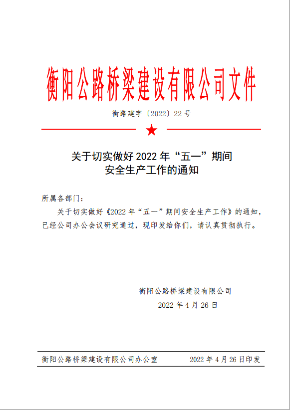 2022年04月27日 15:43 來源:衡陽公路橋梁建設(shè)有限公司 辦公室