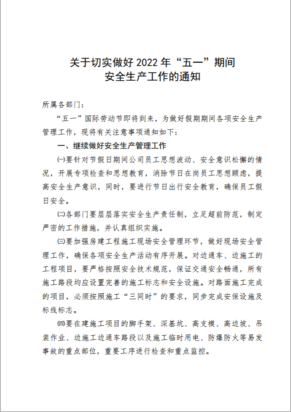 關(guān)于切實做好2022年“五一”期間 安全生產(chǎn)工作的通知